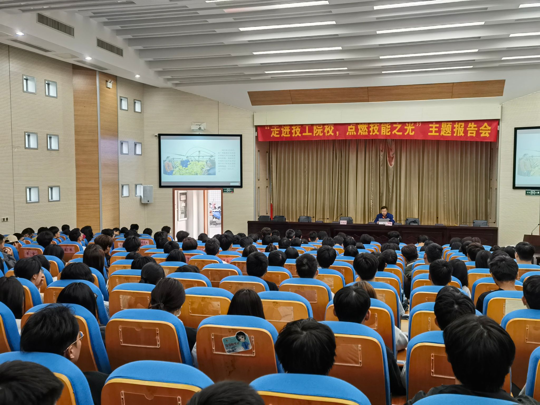 袁军芳以“劳动创造幸福”为主题,结合党的二十大精神,分享了不断探索、不断创新的成长经历。鼓励同学们要以精益求精的态度瞄准学习方向和目标,持之以恒不断前进,践行工匠精神,走好匠心筑梦薪火相传之路,才能把握机会实现出彩人生。