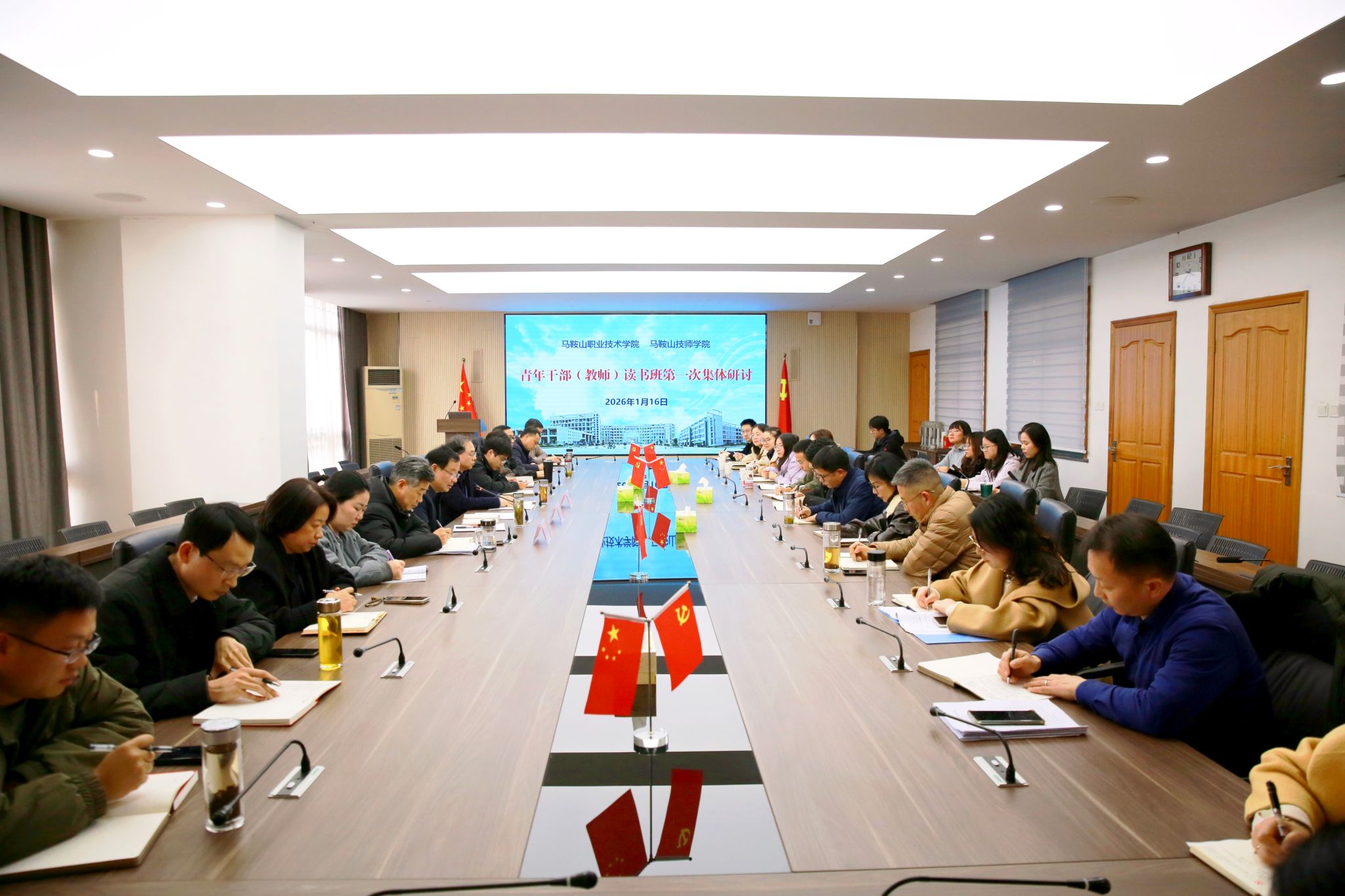 1月16日下午,学院青年干部(教师)读书班开展第一次集体研讨。院党委书记汪昌斌出席并点评,院党委副书记、副院长苏丰,院党委委员、组织人事处处长徐孟林出席,读书班全体学员参加。