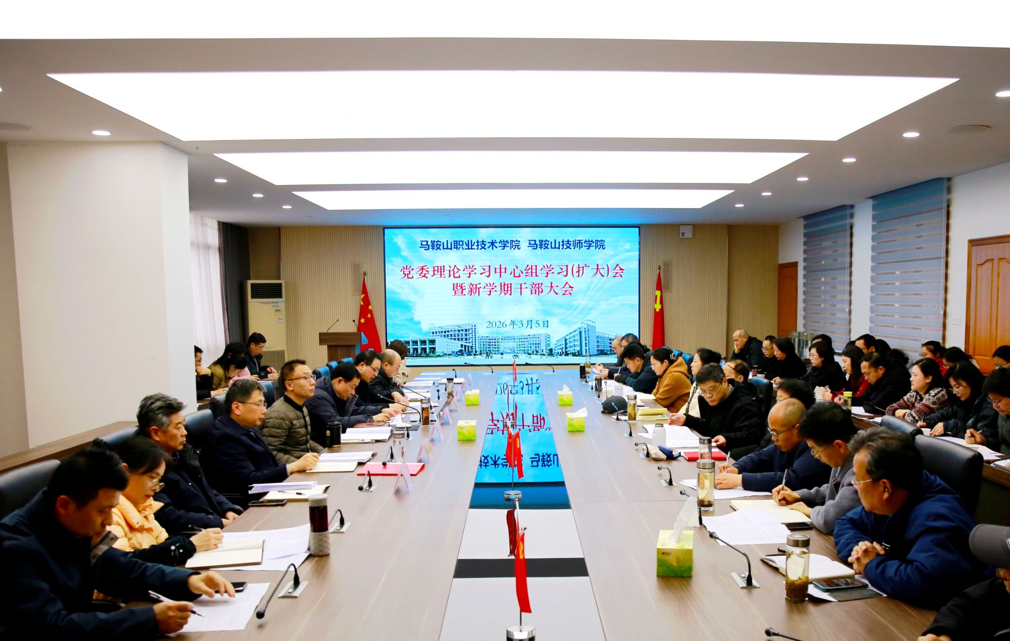 3月5日下午,学院召开党委理论学习中心组学习(扩大)会暨新学期干部大会,党委书记汪昌斌主持并讲话,党委副书记、院长刘恒及中心组成员出席,各系部、部门副科级以上干部、学院青年干部(教师)读书班学员参加会议。